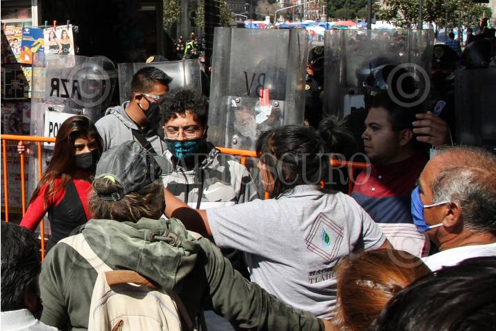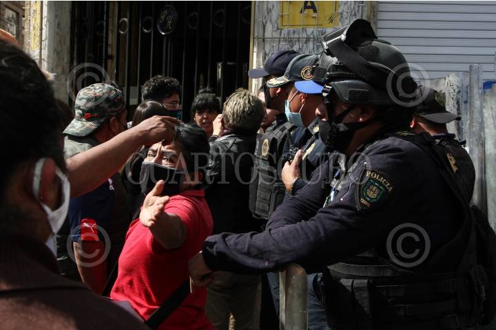 Protesta de comerciantes del Centro Histórico en la periferia Zócalo. FOTO: ROGELIO MORALES /CUARTOSCURO.COM