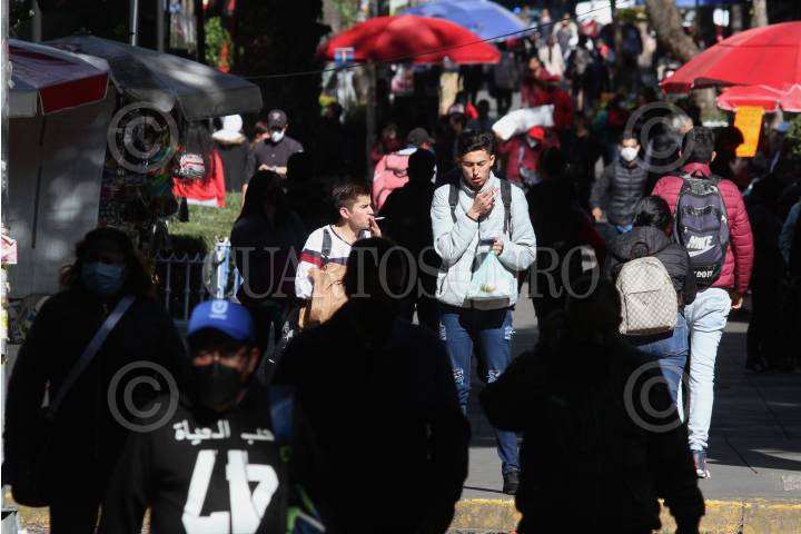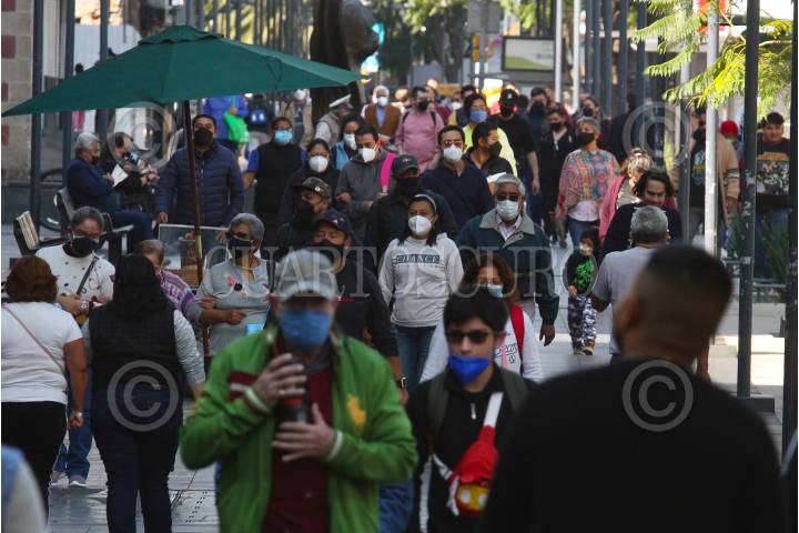 Pese al retroceso a semáforo amarillo capitalino a abarrotan el primer cuadro de la ciudad.