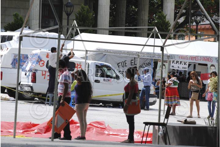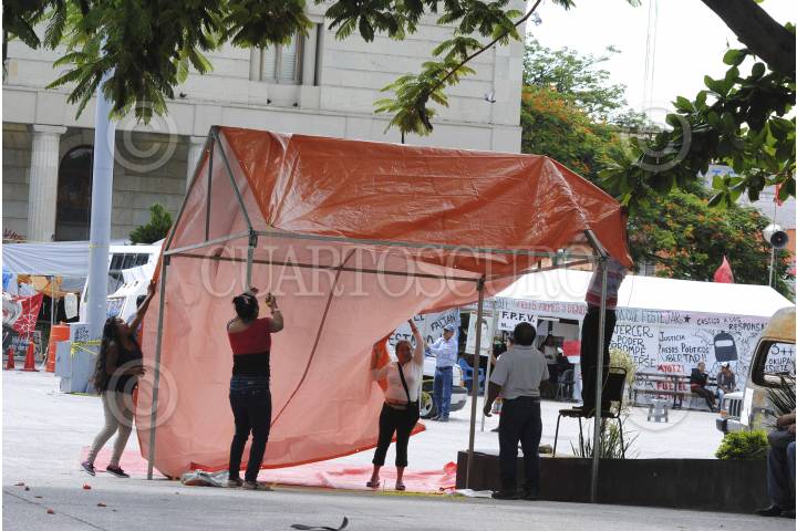 CHILPANCINGO, GUERRERO 16SEPTIEMBRE2015.-Personas se sumaron al plantón que mantienen integrantes de la Coordinadora Estatal de Trabajadores de la Educación en Guerrero (Ceteg) desde el 08 de octubre del 2014 en la plaza Primer Congreso de Anáhuac, en exigencia a la presentación con vida de los 43 estudiantes desaparecidos en Iguala y en rechazo a la evaluación educativa. FOTO: JOSÉ I. HERNÁNDEZ /CUARTOSCURO.COM