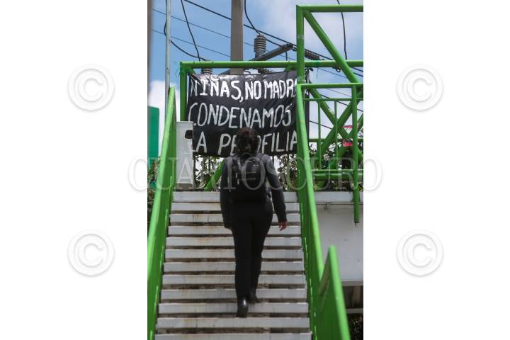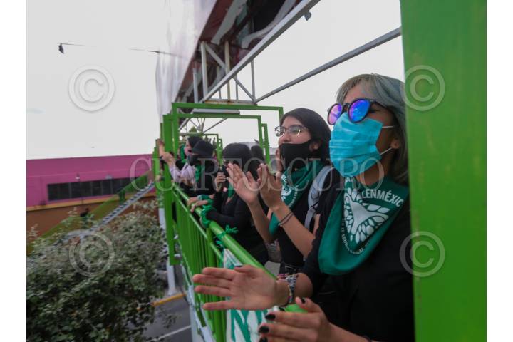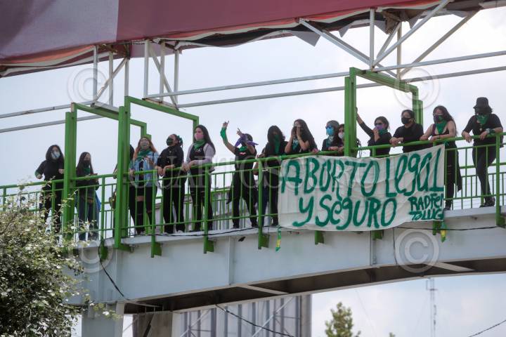 Feministas intervinieron un puente peatonal en Paseo Tollocan como un acto simbólico a favor de despenalizar el aborto en el Estado se Mexico.