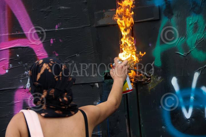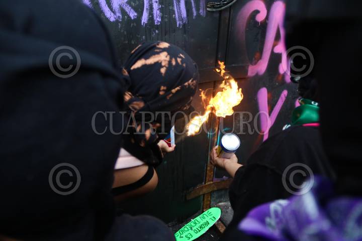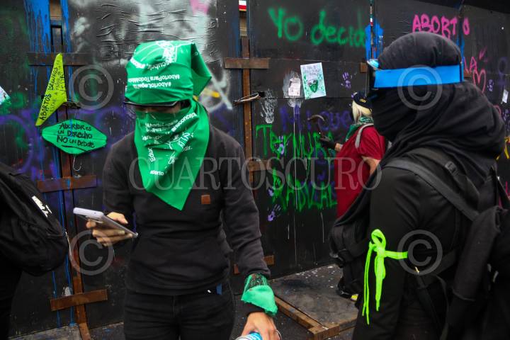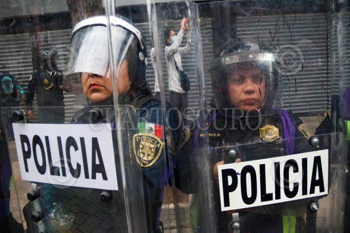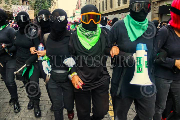 CIUDAD DE MÉXICO, 28SEPTIEMBRE2024.- Jóvenes encapuchadas se enfrentaron con mujeres integrantes de la Secretaría de Seguridad Ciudadana (SSC) durante la marcha por el "Día de acción Global por el Aborto Legal, Seguro y Gratuito". FOTO: ALFREDO DÁVILA/CUARTOSCURO.COM
