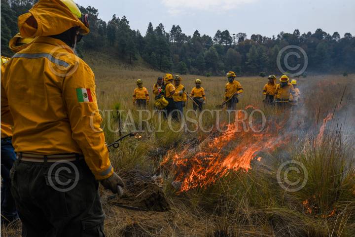 TIANGUISTENCO, ESTADO DE MÉXICO, 28FEBRERO2025.- Brigadas de PROBOSQUE, Santiago Tianguistenco así como ejidatarios, comuneros y CORENADR, participaron en la quema controlada que se realizó en el paraje Tlamatecuani en la comunidad de San Nicolás Coatepec, Santiago Tianguistenco, en una área de 2 hectáreas, como parte de las acciones de prevención que se realizan antes y durante la temporada de incendios forestales. En lo que va del año ya se han registrado 42 incendios forestales en la entidad mexiquense afectado 441.12 hectáreas, en los municipios de Acambay, Valle de Bravo, Atlacomulco, Ocuilan y Zinacantepec. FOTO: CRISANTA ESPINOSA AGUILAR /CUARTOSCURO.COM