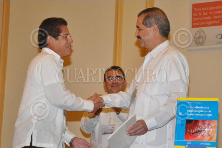 CANCÚN, QUINATANA ROO, 15SEPTIEMBRE2009.- José Ángel Cordova Villalobos, secretario de Salud, inauguró la XXXVII Reunión Nacional de Endoscopia en esta ciudad. Presentó su libro Procedimientos Endoscopicos en Gastrointerología, en coautoria con Antonio de la Torre, doctor. FOTO: EDUARDO MORALES/CUARTOSCURO.COM