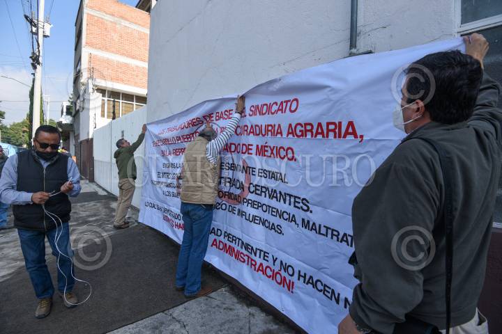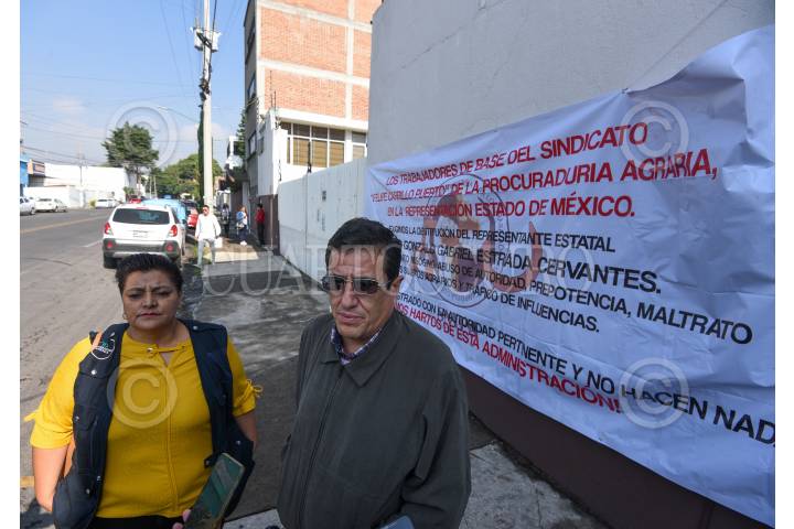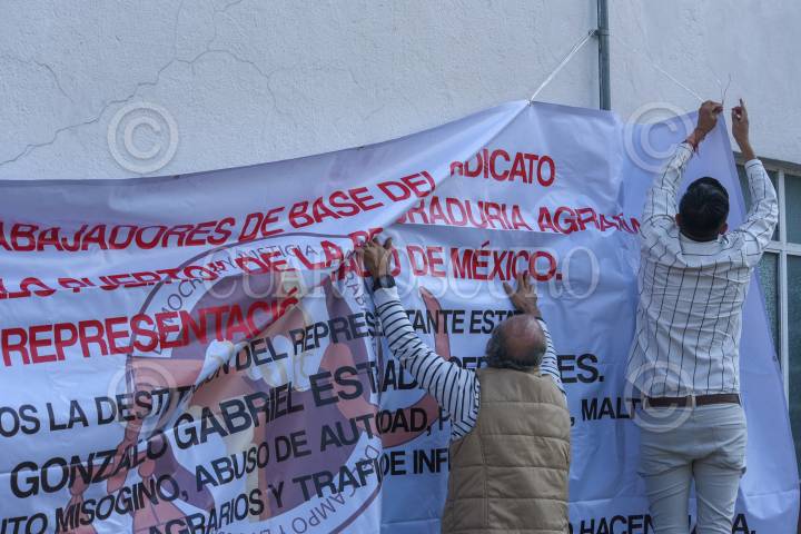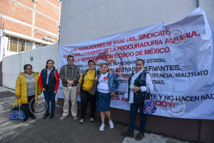 Trabajadores de la Procuraduría Agraria en Toluca exigieron la destitución de Gonzalo Gabriel Estrada por acoso laboral, mal trato, sobre todo a las trabajadoras, iniciando un paro laboral de brazos caídos.