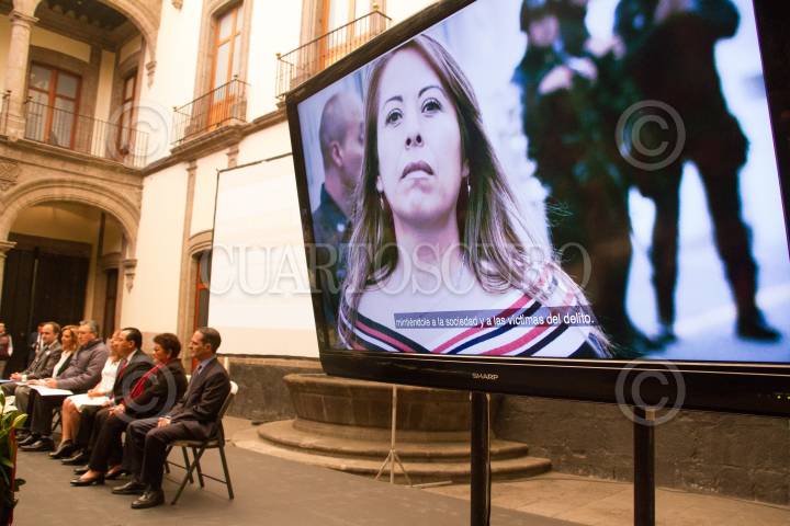 CIUDAD DE MÉXICO, 10OCTUBRE2019.- Este medio día en el Museo de la Ciudad de México se realizó el acto disculpa pública a la ex policía Federal, Lorena González Hernández, señalada como lider de una banda de secuestradores llamada la Flor, quien supuestamente secuestro y muerte del hijo de Alejandro Martí. El evento lo encabezó la Procuradora Ernestina Godoy y el Presidente del Tribunal de Justicia Rafael Guerra Alvarez. Acudieron como invitados especiales, Luis Raúl González Pérez, la Senadora Nestora Salgado y Maria Elena Morera. FOTO: VICTORIA VALTIERRA /CUARTOSCURO.COM