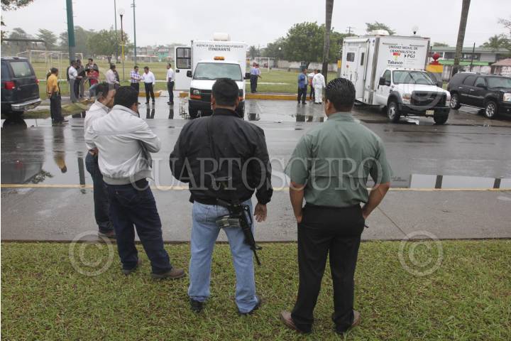 VILLAHERMOSA, TABASCO, 12MARZO2013.-Fernando Valenzuela Pernas, Procurador del Estado; en compañía de Audomaro Martínez Zapata, Secretario de Seguridad Pública; al momento de poner en marcha las unidades del Ministerio Público Itinerante en la populosa colonia Gaviotas. Ahí el delegado de esta zona informó a las autoridades que el índice delictivo es demasiado alto y que hay una banda de malhechores que va poniendo marcas con signos en varias propiedades que posteriormente son asaltadas o cometen secuestros. FOTO: MARCO POLO GUZMÁN HERNÁNDEZ /CUARTOSCURO.COM