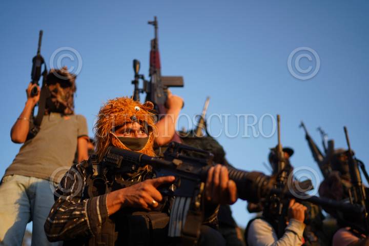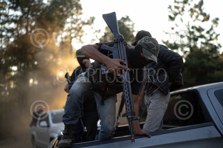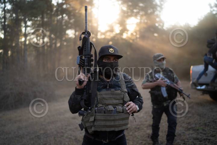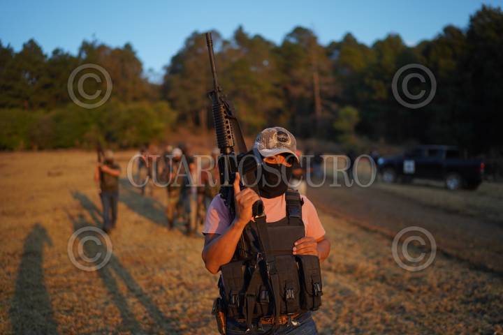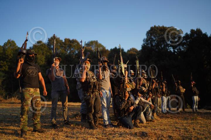 Hombres autodenominados autodefensas de los municipios de Tancítaro, Los Reyes, Peribán, y Ario, en Michoacán, entrenan patrullajes en sus comunidades para repeler a presuntos miembros del crimen organizado que han intentado apoderarse de estos territorios, que se caracterizan por ser potencias en la producción de aguacate.