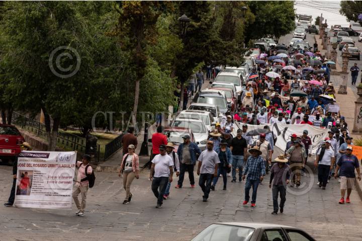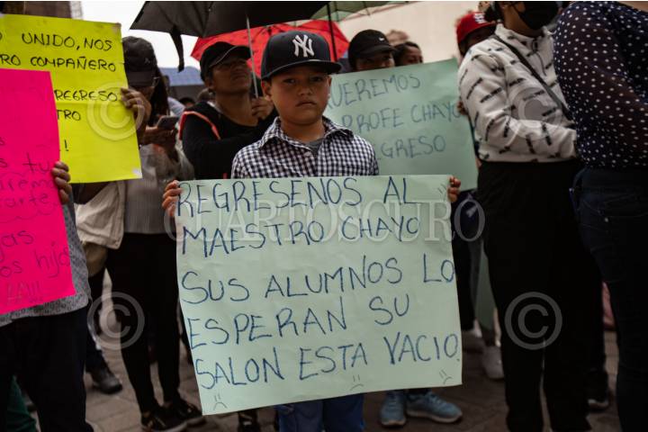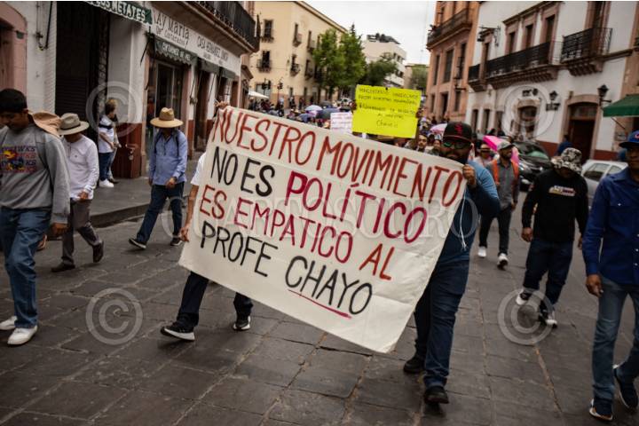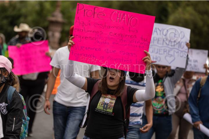 ZACATECAS, ZACATECAS, 26ABRIL2024.- Maestros y estudiantes de la Escuela Rural de San Marcos, realizaron una marcha desde la Secretaria de Educación Estatal hasta la Plaza de Armas en el centro histórico; para demandar la aparición con vida del maestro Chayo, quien sufrió de desaparición forzada desde el pasado domingo cuando se encontraba en el interior de su domicilio en el municipio de Cd. Cuauhtémoc. En plena crisis de desapariciones del estado, con por lo menos 60 personas en abril y 148 en lo que va del año; los maestros llamaron a no quedarse callados y exigir la responsabilidad del Estado frente al momento en qué se vive. FOTO: ADOLFO VLADIMIR /CUARTOSCURO.COM