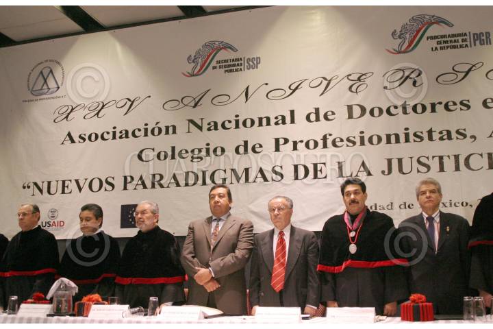 MEXICO, D.F., 28SEPTIEMBRE2005.- Cesar Jauregui, senador del PAN, Mariano Azuela Huitrón, ministro presidente de la Suprema Corte de Justicia y Elías Huertas Psihas, presidente de la ANND, durante la inauguración del XXV Aniversario de la Asociación Nacional de Doctores en Derechos del Colegio de Profesionistas, A.C. FOTO: Moisés Pablo/CUARTOSCURO.COM