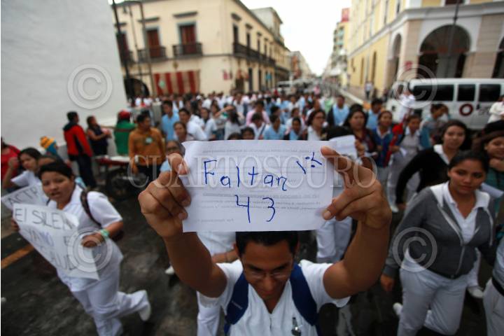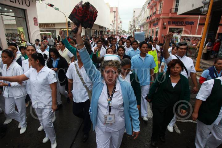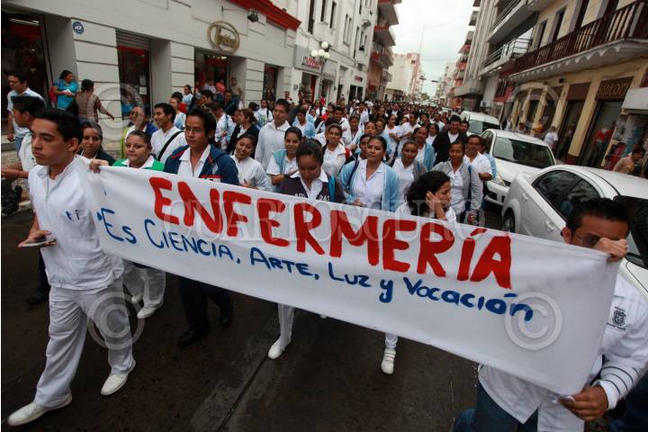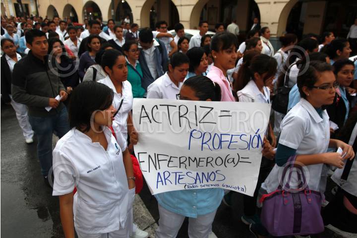 VERACRUZ, VERACRUZ, 09DICIEMBRE2014.- Estudiantes y enfermeros profesionales marcharon por las calles del puerto de Veracruz para exigir al gobierno que desista en la conversión de carrera técnica la licenciatura de enfermería. FOTO: FÉLIX MÁRQUEZ /CUARTOSCURO.COM