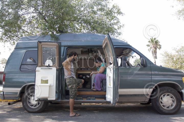 MONTERREY, NUEVO LEÓN, 19AGOSTO2017.- David e Inmaculada; una pareja de profesionistas españoles dejan sus trabajos en su país para recorrer diferentes ciudades del mundo, en su travesía por México lo hacen en una furgoneta acondicionada con paneles solares para el funcionamiento de la electricidad del vehículo partiendo desde Tijuana con el propósito de seguir conociendo más ciudades al sur de la República y Latinoamérica.Son creadores del proyecto “Road2help” en el cual realizan programas sociales de manera voluntaria y sin fines de lucro, tales como pláticas y asesorías sobre empoderamiento de la mujer e igualdad de género. FOTO: GABRIELA PÉREZ MONTIEL /CUARTOSCURO.COM