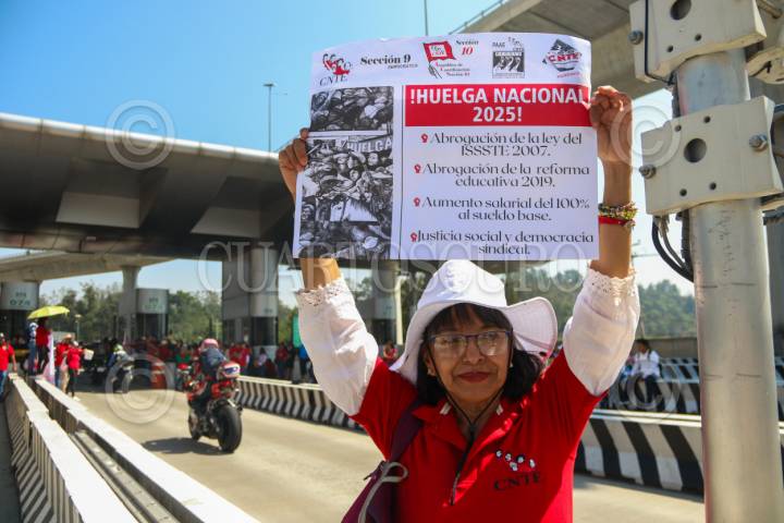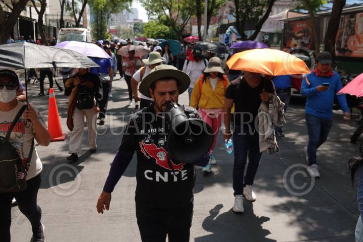 CIUDAD DE MÉXICO, 16MAYO2025.- Maestras y maestros de la Coordinadora Nacional de Trabajadores de la Educación (CNTE) mantuvieron un bloqueo de horas al cruce de Paseo de la Reforma e Insurgentes Sur en exigencia a que la presidenta Claudia Sheinbaum cumpla su pliego petitorio. Declararon que continuarán con las movilizaciones y exigencias hasta que sean recibidos por la jefa del ejecutivo. FOTO: GALO CAÑAS/CUARTOSCURO.COM