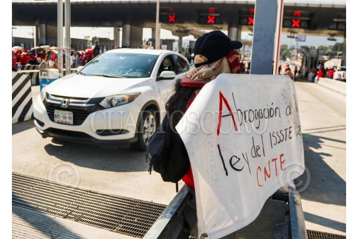 CIUDAD DE MÉXICO. 19MAYO2025.- Maestros de la CNTE, permitieron el paso libre al ingreso de la caseta México-Cuernavaca, en la alcaldía Tlalpan. el paro es culpa del Estado, dijeron los mentores quienes continuaran con sus protestas. FOTO: VICTORIA VALTIERRA/CUARTOSCURO.COM
