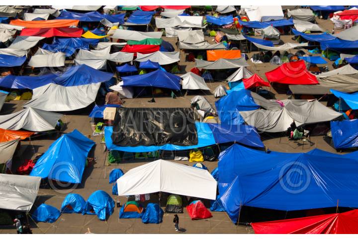 CIUDAD DE MÉXICO. 20MAYO2025.- Se amplio el plantón de maestros de la CNTE, en el centro histórico de la Capital. Durante el día algunos profesores salen a protestar y otros se quedan con el resguardo del campamento. FOTO: VICTORIA VALTIERRA/CUARTOSCURO.COM
