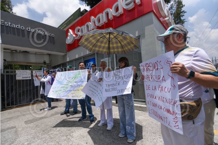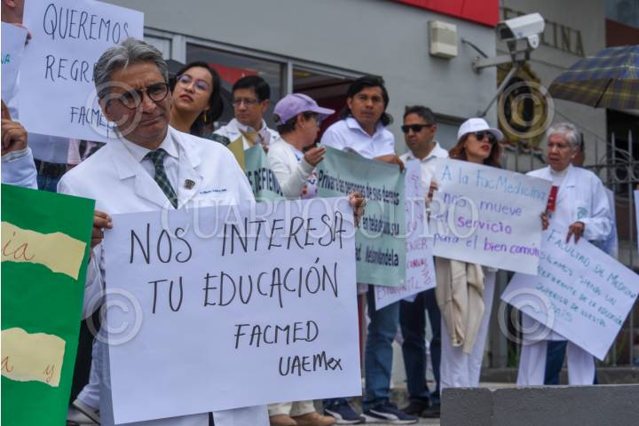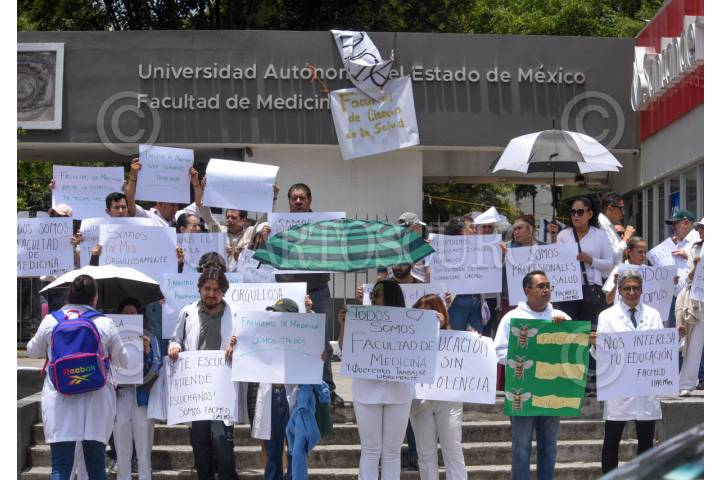 TOLUCA, ESTADO DE MÉXICO, 06JUNIO205.- Estudiantes, padres de familia y profesores de la Facultad de Medicina de la Universidad Autónoma del Estado de México se reunieron en las inmediaciones de esta institución para expresar su rechazo al paro que se mantiene en la escuela, con pancartas expresaron su deseo de regresar a sus actividades. FOTO: CRISANTA ESPINOSA AGUILAR /CUARTOSCURO.COM