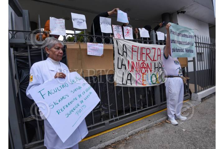 TOLUCA, ESTADO DE MÉXICO, 06JUNIO2025.- Dos profesores de la Facultad de Medicina de la Universidad Autónoma del Estado de México se reunieron en las inmediaciones de esta institución para expresar su rechazo al paro que se mantiene en la escuela, con pancartas expresaron su deseo de regresar a sus actividades. FOTO: CRISANTA ESPINOSA AGUILAR /CUARTOSCURO.COM