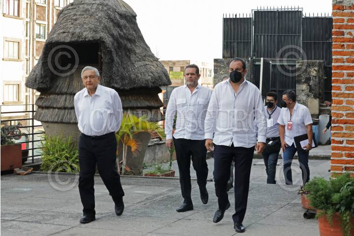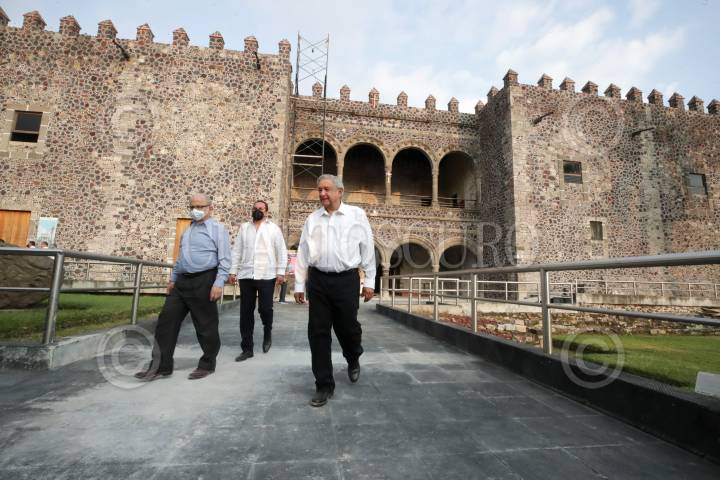 Andrés Manuel López Obrador, Presidente de México, y Diego Prieto Hernández, director del INAH, asistieron a la Parroquia "San Miguel Arcángel", en Jojutla, ahí participaron en el Programa Nacional de Reconstrucción.
