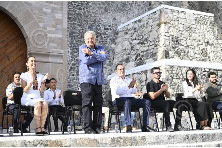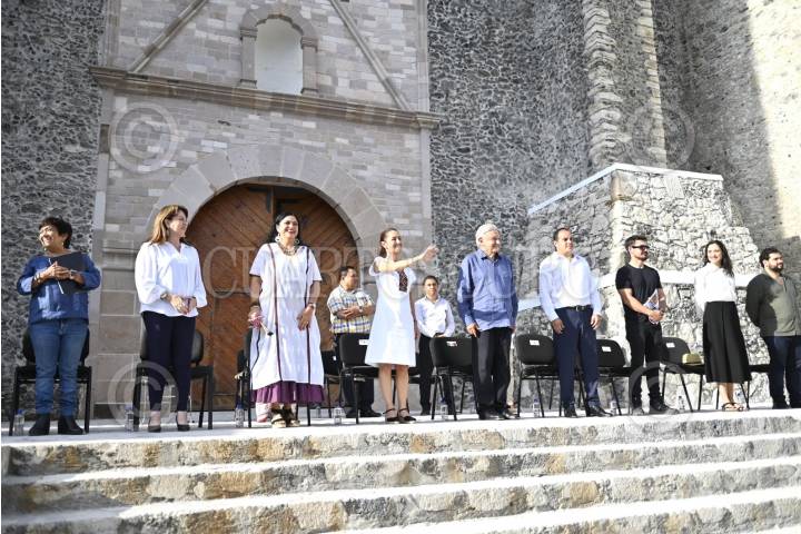 TLAQUILTENANGO, MORELOS, 26JULIO2024.- Andrés Manuel López Obrador, presidente de la Republica, encabezo el evento "Evaluación del Programa Nacional de Reconstrucción" realizado en la Parroquia de Santo Domingo de Guzmán. El mandatario estuvo acompañado de la presidenta electa, Claudia Sheinbaum Pardo, de Margarita González Saravia, gobernadora electa y el gobernador Cuauhtémoc Blanco Bravo. FOTO: ESPECIAL/CUARTOSCURO.COM