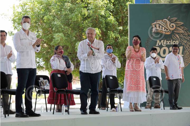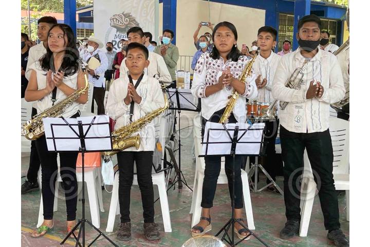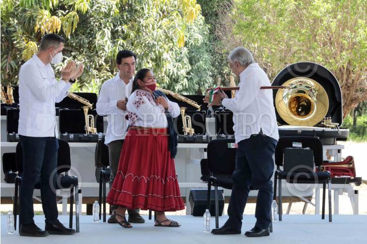 Andrés Manuel López Obrador, presidente de México, encabezó el acto "Cultura para el Bienestar. Entrega de instrumentos musicales y evaluación de Programas Prioritarios en el Centro de Bachillerato Tecnológico Industrial y de Servicios CBTIS No. 107" en el municipio oaxaqueño San Juan Bautista Tuxtepec.