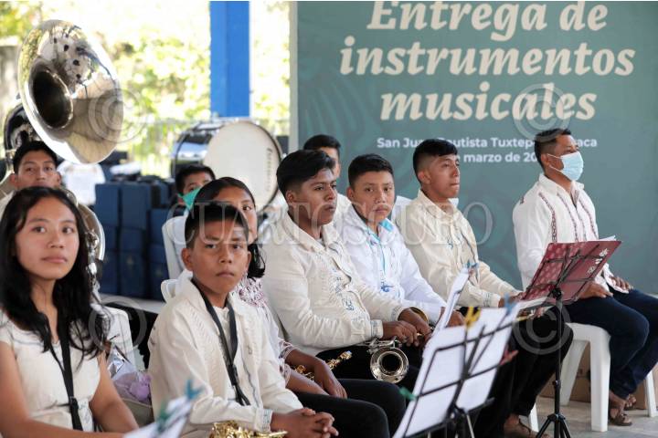 Entrega de instrumentos musicales y evaluación de Programas Prioritarios en el Centro de Bachillerato Tecnológico Industrial y de Servicios CBTIS No. 107" en el municipio oaxaqueño.