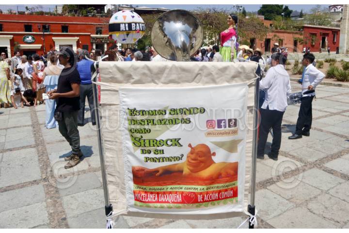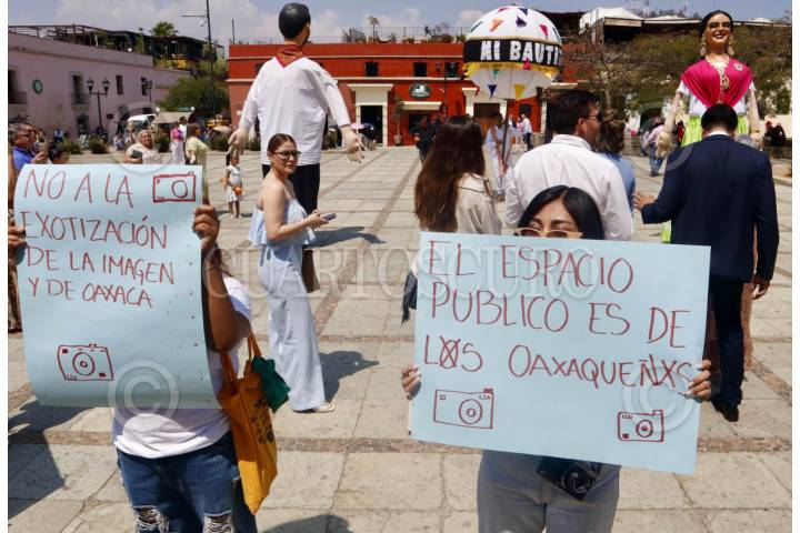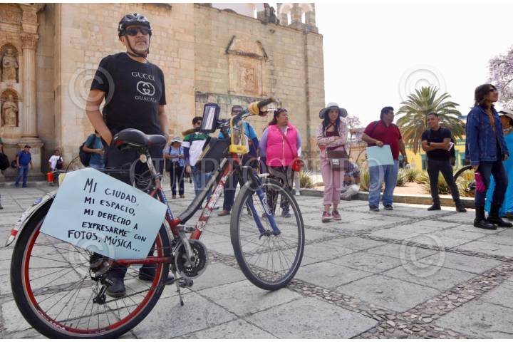 OAXACA DE JUÁREZ, OAXACA, 29MARZO2025.- Fotógrafos, videografos, creadores de contenido y ciudadanos se manifestaron en contra de la medida del gobierno municipal capitalino de Oaxaca para el cobro de impuestos y trámite de permiso para realizar material audiovisual con equipo profesional y fines comerciales en espacios públicos. Los manifestantes catalogaron la medida como arbitraria, limitante y que promueve la gentrificación pues consideraron que mientras grandes producciones tienen todas las facilidades para realizar trabajo audiovisual en Oaxaca, realizadores locales están cada vez más limitados. FOTO: CAROLINA JIMÉNEZ MARISCAL/CUARTOSCURO.COM