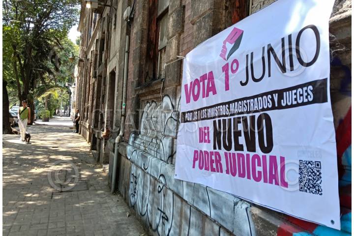 CIUDAD DE MÉXICO, 09ABRIL2025.- Una manta llama a la población a participar en la elección en donde se habrá de elegir a los nuevos Poder Judicial, que se realizará el 1 de junio. FOTO: MOISÉS PABLO/CUARTOSCURO.COM