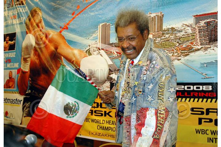 MÉXICO D.F., 24ENERO2008.- Don King, promotor internacional de box durante el evento en donde se dio a conocer el evento History in Cancun, campeonato mundial de peso completo que se realizara el 8 de marzo en la plaza de toros de Cancun. FOTO: RODOLFO ANGULO/CUARTOSCURO.COM