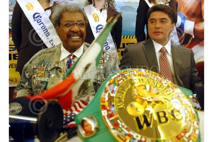 MÉXICO D.F., 24ENERO2008.- Don King, promotor internacional de box y el gobernador de Quinta Roo Felix Gonzalez durante el evento en donde se dio a conocer el evento History in Cancun, campeonato mundial de peso completo que se realizara el 8 de marzo en la plaza de toros de Cancun. FOTO: RODOLFO ANGULO/CUARTOSCURO.COM