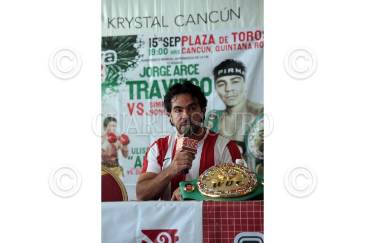 CANCÚN, QUINTANA ROO, 13SEPTIEMBRE2009.- El promotor de box en el estado; Pepe Gómez al presentar el cartel con los boxeadores da a conocer que para el próximo año ofrecerá una función estelar internacional en alta mar a bordo de un crucero. FOTO: MARCO POLO GUZMÁN HERNÁNDEZ/CUARTOSCURO.COM
