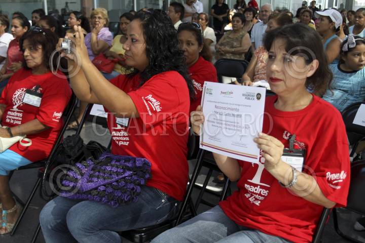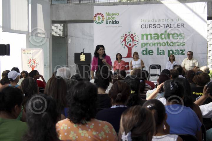 MONTERREY, NUEVO LEÓN, 23AGOSTO2012.-Madres de familia de las zonas más violentas y conflictivas de la ciudad, se incorporaron en el programa "Madres promotoras de la paz" donde fueron capacitadas para detectar riesgos en su familia y evitar que sus hijos ingresen a las adicciones o a grupos delictivos. Patricia Salazar Marroquín titular de la subsecretaría de prevención social de Nuevo León encabezó la ceremonia de graduación. FOTO: GABRIELA PÉREZ MONTIEL /CUARTOSCURO.