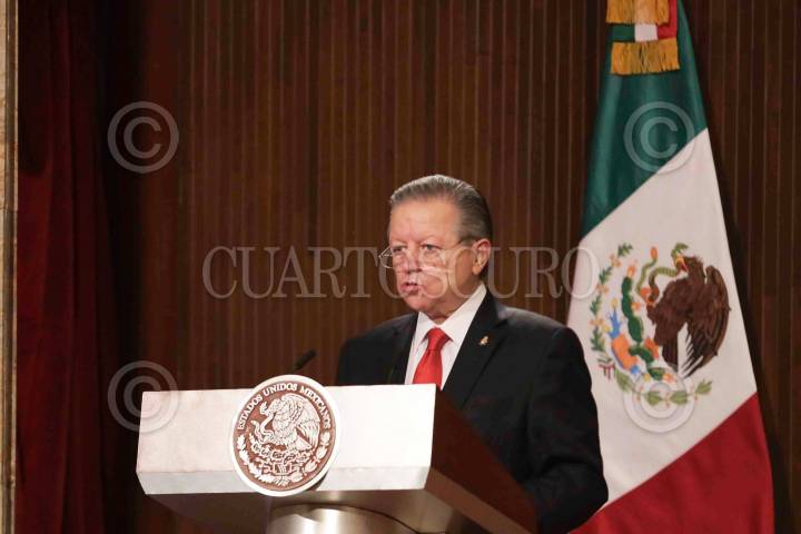 Arturo Zaldívar, presidente Ministro de la Suprema Corte de Justicia de la Nación, durante la ceremonia por el 105 Aniversario de la Promulgación de la Constitución Política de los Estados Unidos Mexicanos en Teatro de la República en Querétaro