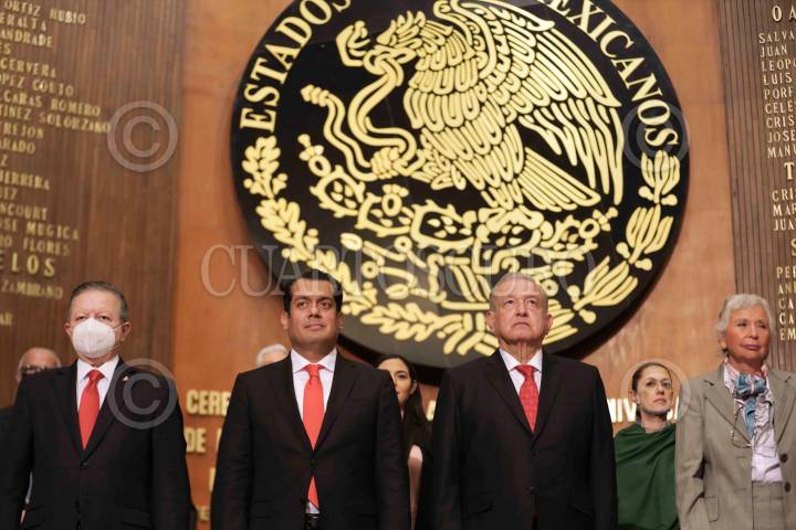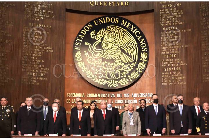 Andrés Manuel López Obrador, presidente de México, encabezó la ceremonia por el 105 Aniversario de la Promulgación de la Constitución Política de los Estados Unidos Mexicanos en Teatro de la República en Querétaro