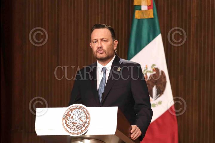 Mauricio Kuri, gobernador de Querétaro, durante la ceremonia por el 105 Aniversario de la Promulgación de la Constitución Política de los Estados Unidos Mexicanos en Teatro de la República en Querétaro