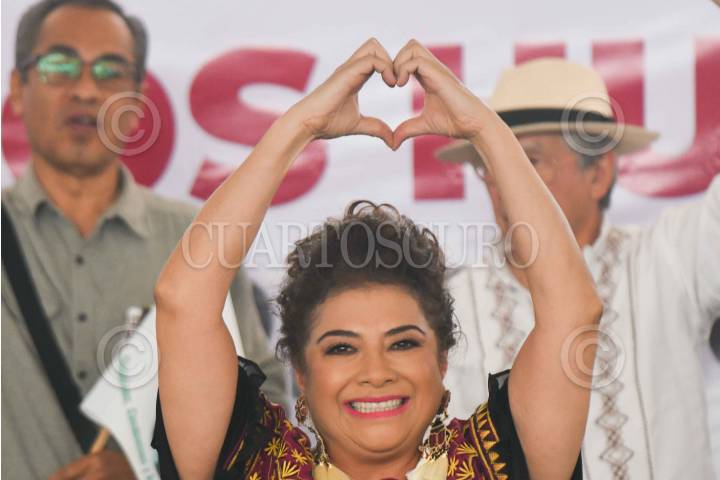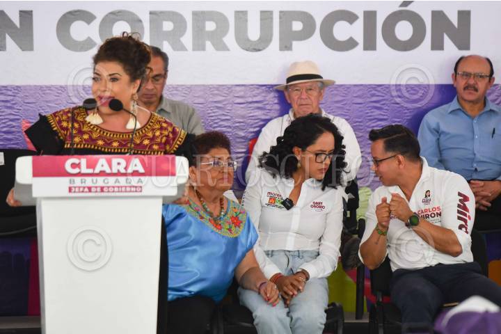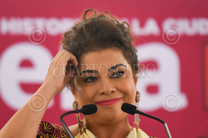 CIUDAD DE MÉXICO, 18MAYO2024.- Clara Brugada, candidata a la Jefatura de Gobierno por la coalición "Sigamos Haciendo Historia" durante la presentación del proyecto de gobierno "Por un gobierno de derechos humanos y sin corrupción" realizado en el kiosco de Huipulco ante decenas de simpatizantes. FOTO: MARIO JASSO/CUARTOSCURO.COM