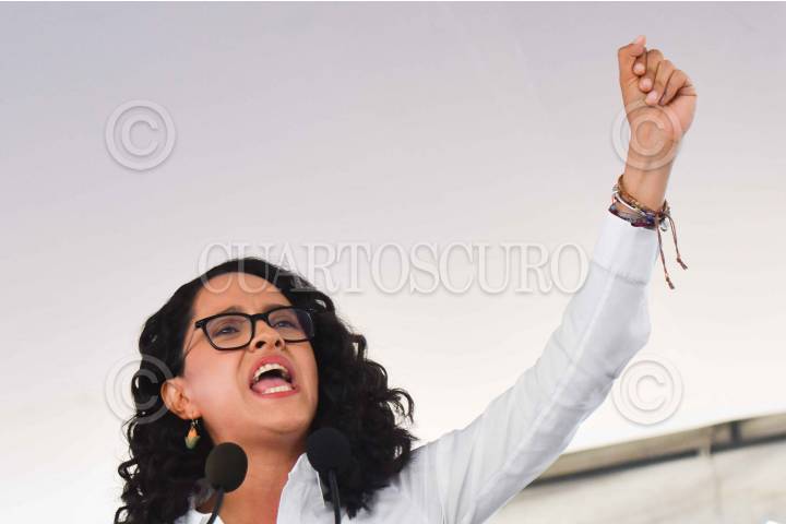 CIUDAD DE MÉXICO, 18MAYO2024.- Gabriela Osorio, candidata a la alcaldía de Tlalpan, durante su intervención en el mitin de Clara Brugada, candidata a la Jefatura de Gobierno por la coalición "Sigamos Haciendo Historia" quién presentó el proyecto de gobierno "Por un gobierno de derechos humanos y sin corrupción" en el kiosco de Huipulco ante decenas de simpatizantes. FOTO: MARIO JASSO/CUARTOSCURO.COM