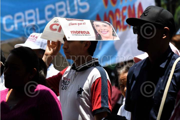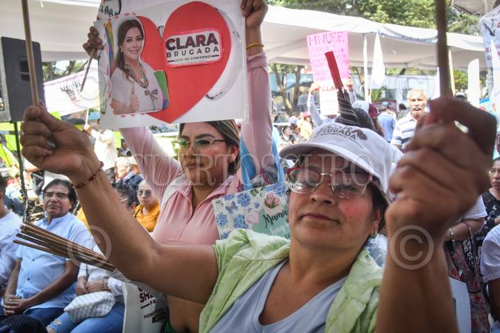 CIUDAD DE MÉXICO, 18MAYO2024.- Simpatizantes durante el mitin de Clara Brugada, candidata a la Jefatura de Gobierno por la coalición "Sigamos Haciendo Historia" quién presentó el proyecto de gobierno "Por un gobierno de derechos humanos y sin corrupción" en el kiosco de Huipulco. FOTO: MARIO JASSO/CUARTOSCURO.COM