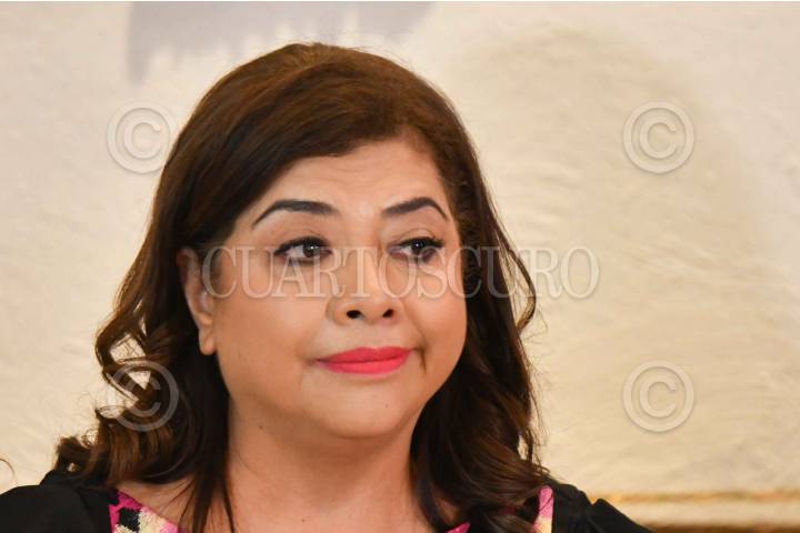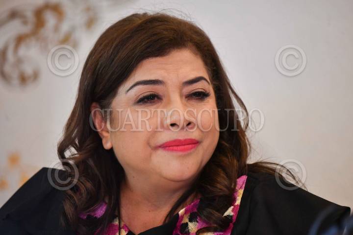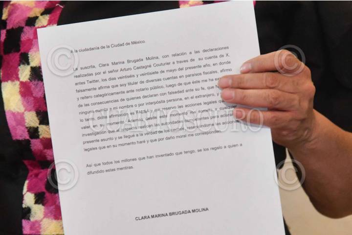 CIUDAD DE MÉXICO, 28MAYO2024.- Clara Brugada, candidata a la Jefatura de Gobierno por la coalición Sigamos Haciendo Historia, ofreció conferencia de prensa para informar un presunto operativo de compra de votos a menos de una semana d enque se lleve a cabo el proceso electoral, además firmó ante el notario Fernando Perez Arredondo, una denuncia en contra del empresario Arturo Castagné por difamación al difundir presunta documentación que informa que la candidata tendría una cuenta oculta en paraísos fiscales. FOTO: MARIO JASSO/CUARTOSCURO.COM