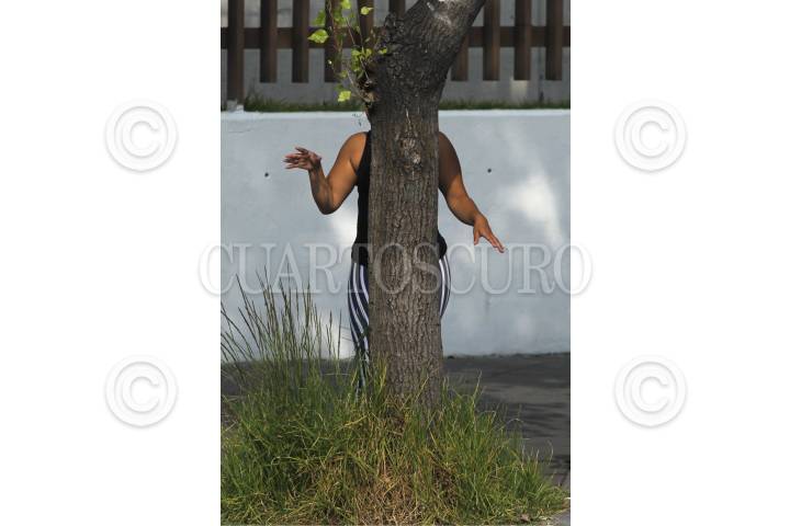 MÉXICO, D.F., 17AGOSTO2014.- Una mujer presuntamente trabajadora sexual, espera algún cliente detrás de un árbol sobre la acera de Jesús García esquina con Luis Donaldo Colosio en la delegación Cuauhtémoc. FOTO:ENRIQUE ORDÓÑEZ /CUARTOSCURO.COM