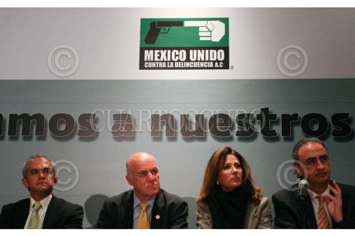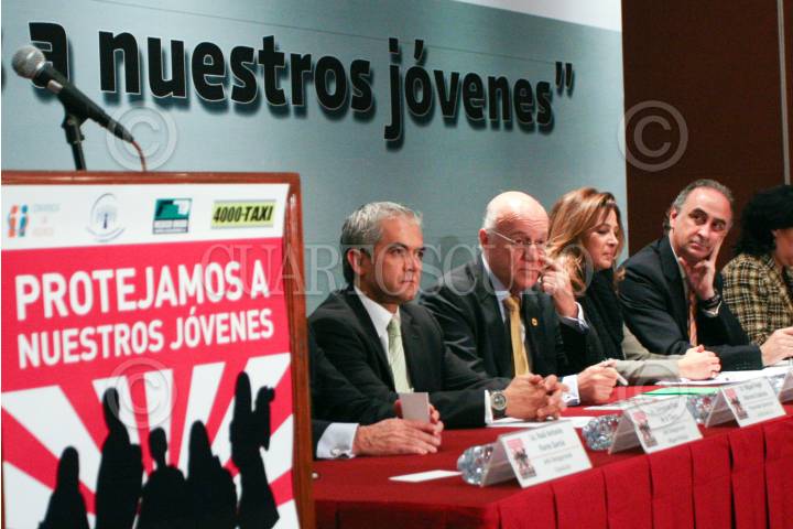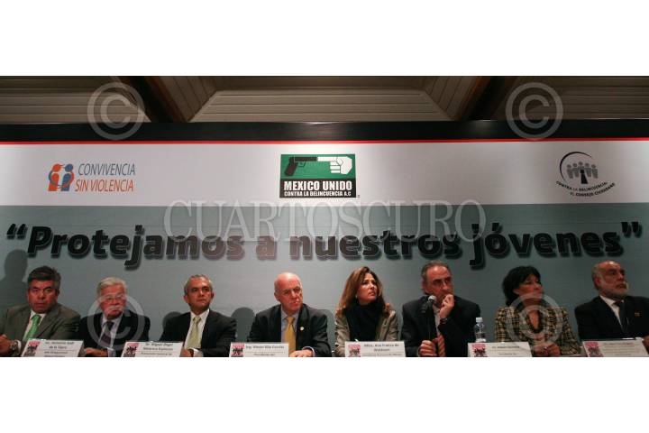 MÉXICO D.F., 26OCTUBRE2009.- Ana Franco Wattnem, Presidenta de México Unido Contra la Delincuencia, acompañada de Miguel Ángel Mancera , Procurador de Justicia del D.F. Meyer Clip Gevitz, Presidente del Consejo Ciudadano y Joaquín Quintana Presidente de Convivencia sin Violencia, entre otros, dieron a conocer el nuevo programa “Protejamos a Nuestros Jóvenes” el cual busca evitar la venta de alcohol a menores de edad en antros de la Ciudad de México. FOTO: GUILLERMO PEREA/CUARTOSCURO.COM