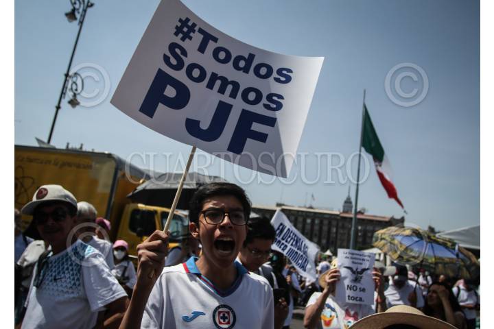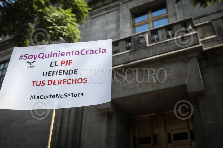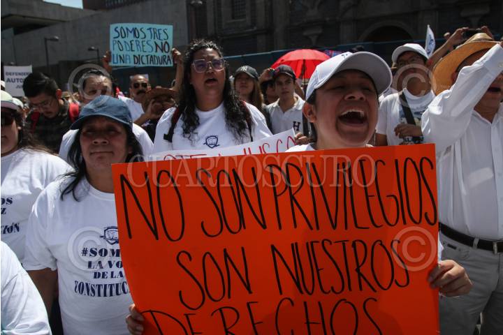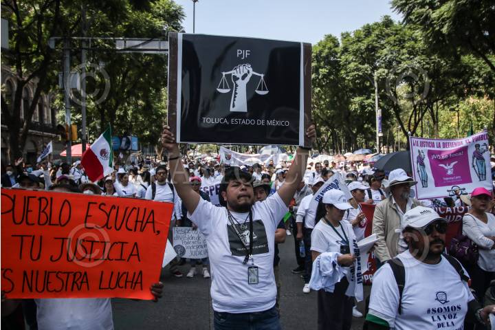 CIUDAD DE MÉXICO, 22OCTUBRE2023.- Cuentos de Trabajadores del Poder Judicial de la Federación (PJF) realizan marcha pacífica a protesta a la eliminación de 13 fideicomisos y anuncian que avanzaran hacia el Zócalo para disiparse al llegar. FOTO: ANDREA MURCIA /CUARTOSCURO.COM