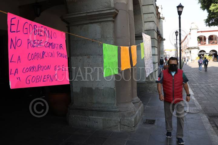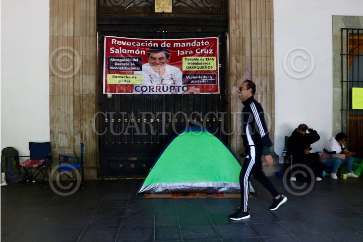 OAXACA, OAXACA, 12FEBRERO2025.- Ex trabajadores de gobierno mantienen un plantón indefinido al rededor del Palacio de Gobierno de Oaxaca, para exigir su reinstalación y garantizar sus derechos laborales. Más de 600 ex trabajadores de los mil 433 afectados por el Decreto 24 que suprimió bases de trabajo, permanecen en la incertidumbre, por lo que han cerrado el recinto gubernamental. FOTO: CAROLINA JIMÉNEZ/CUARTOSCURO.COM