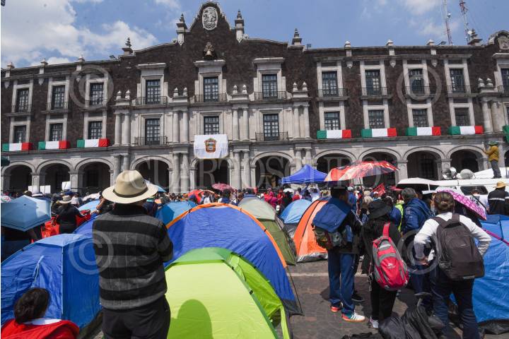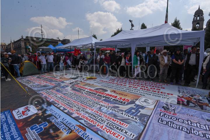 TOLUCA, ESTADO DE MÉXICO, 26FEBRERO2025.- Maestros, estudiantes de UPREZ, pensionados del ISSEMYM, habitantes de Almoloya de Juárez, familiares de presuntos inocentes, y otras organizaciones se instalaron frente a Palacio de Gobierno en plantón exigiendo resolución a diversas problemáticas de salud, pensiones, educación, justicia entre otros a la gobernadora Delfina Gómez Álvarez. FOTO: CRISANTA ESPINOSA AGUILAR /CUARTOSCURO.COM