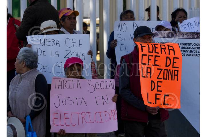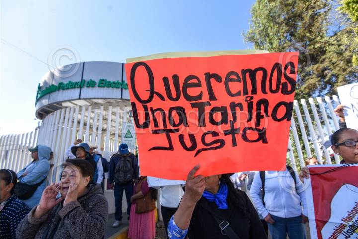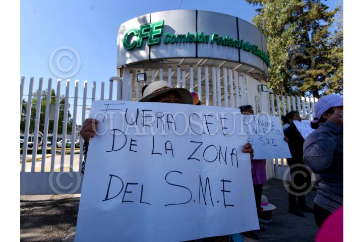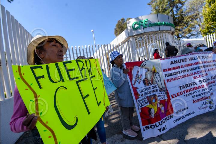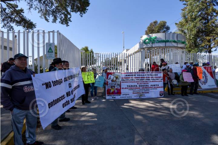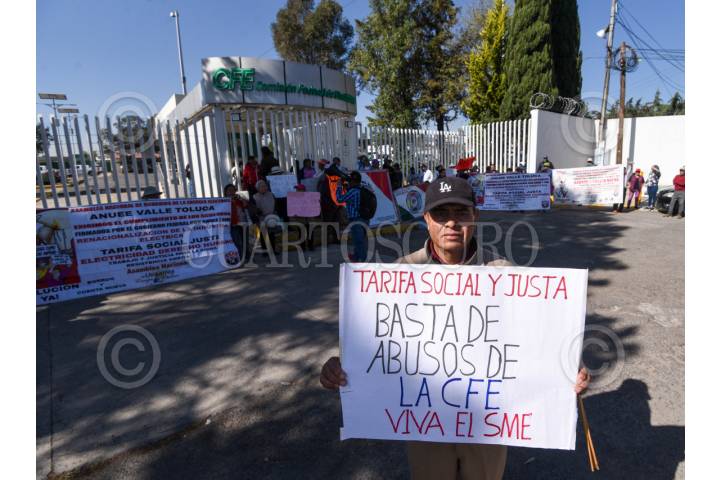 TOLUCA, ESTADO DE MÉXICO, 07ABRIL2025.- Habitantes de la zona norte y sur del municipio de Toluca se manifestaron en las instalaciones de CFE Zona Toluca, exigiendo su salida de estas zonas así como tarifas justas del servicio y un alto a los abusos. FOTO: CRISANTA ESPINOSA AGUILAR /CUARTOSCURO.COM