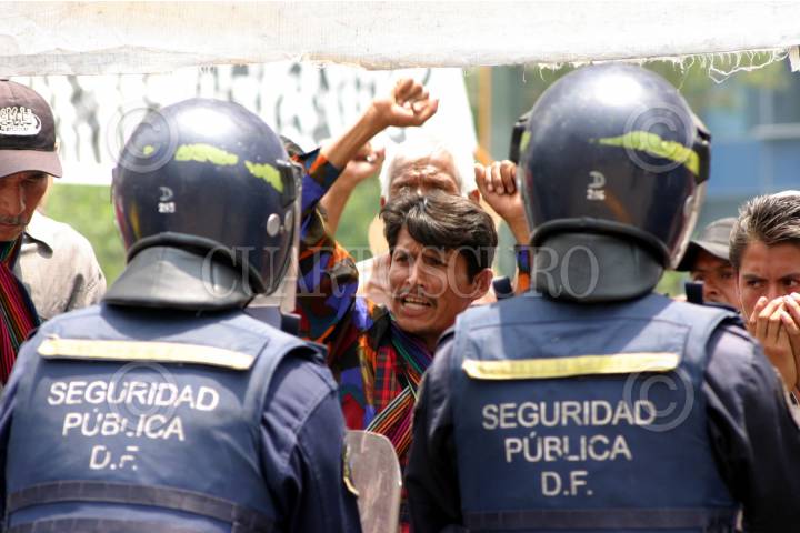 MÈXICO, D.F., 21MAYO2008.- Integrantes de los 400 pueblos se enfrentaron con policias granaderos a pedradas cuando se manifestaron en la explanada del monumento a la madre, hubo varios manifestantes entre lesionados y granaderos. FOTO: IVAN MENDEZ/CUARTOSCURO.COM
