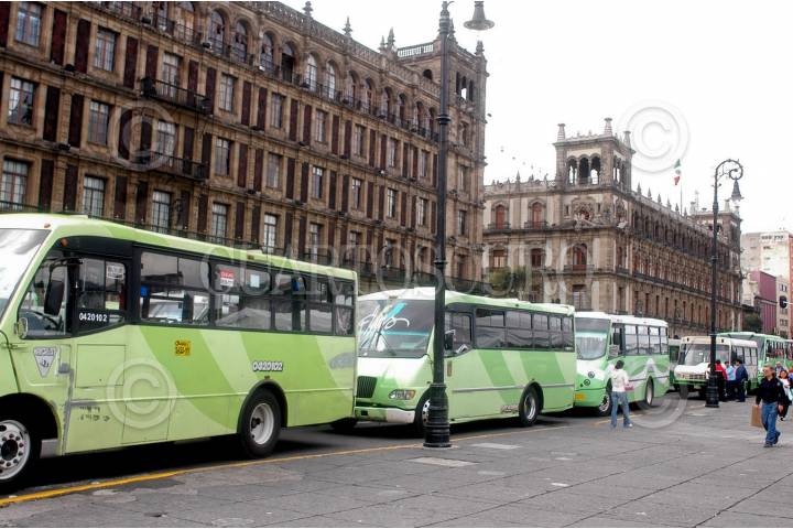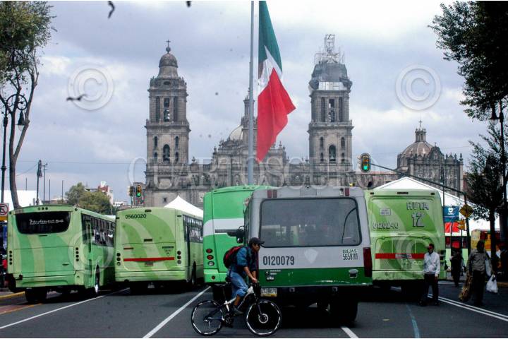 MÉXICO, D.F., 16OCTUBRE2008.- Microbuseros y taxistas de varias Rutas se manifestaron en el zocalo para denunciar la afectacion que sufrieron al ser despojados de sus concesiones de trabajo al momento de que intodujerón el servicio del Metrobus en distintas vias de la Ciudad. exigiendo solucion al jefe de Gobierno, Marcelo Ebrard Casaubon. FOTO: JULIETA MORA/CUARTOSCURO.COM