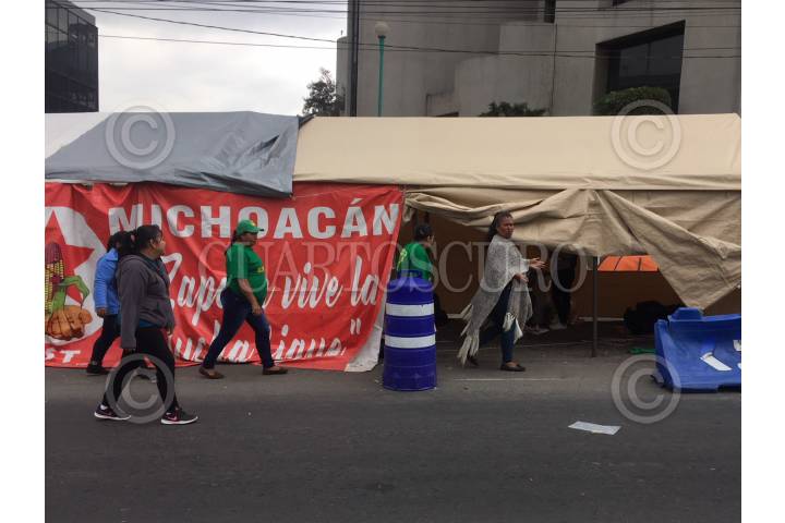 CIUDAD DE MÉXICO, 06JULIO2018.- Protestantes del Movimiento Social por la Tierra y campesinos de diversas zonas rurales de Michoacán, Durango, Nayarit y el Estado de México, mantienen un plantón desde el 3 de julio frente a la SHCP en exigencia del cumplimiento de los proyectos sociales y programas de apoyo a los cuales se comprometió el secretario José Antonio Gonzáles Anaya. FOTO: JACOBO ALBINO /CUARTOSCURO.COM