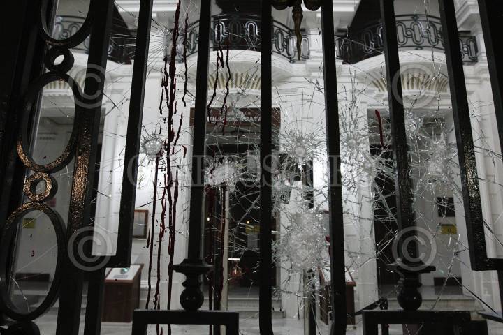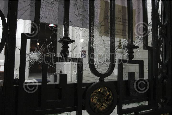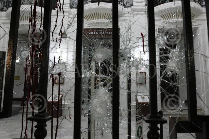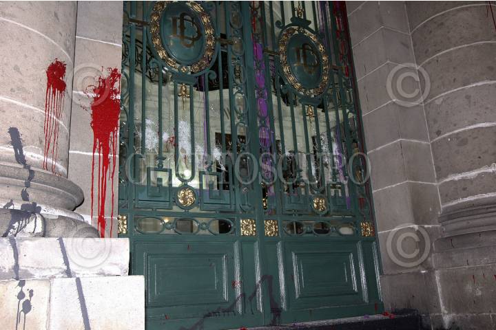 Feministas vandalizan el Congreso Legislativo de la CDMX, rompiendo los cristales de la entrada de acceso en la colonia Centro de la ciudad.