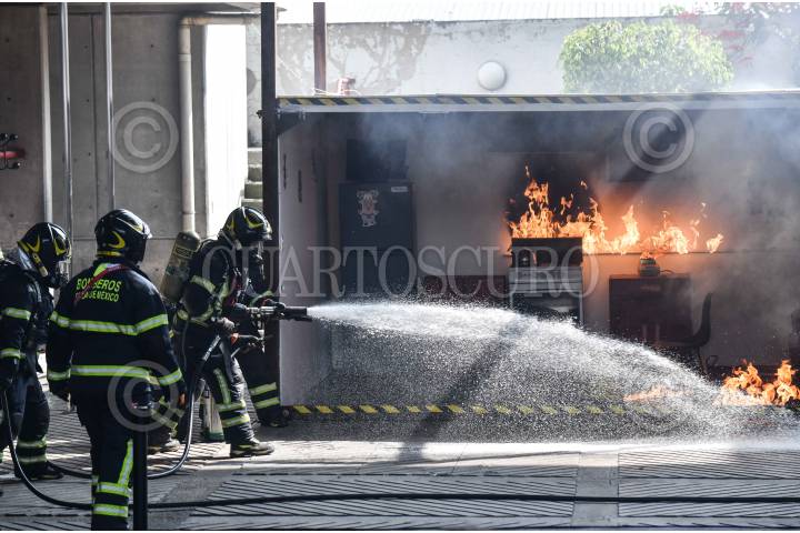 CIUDAD DE MÉXICO, 06DICIEMBRE2024.- Personal del Heroico Cuerpo de Bomberos, realizaron un simulacro de protocolo contra incendios, en la Estación de Bomberos Benito Juárez. FOTO: MARIO JASSO CUARTOSCURO.COM