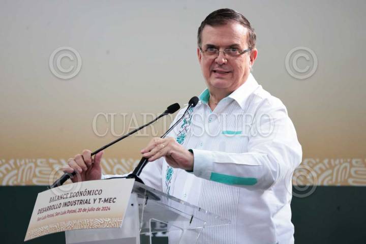 SAN LUIS POTOSÍ, SAN LUIS POTOSÍ, 20JULIO2024.- Marcelo Ebrard, próximo secretario de Economía durante su intervención en el acto protocolario "Balance económico: desarrollo industrial y T-MEC" en el en Centro de Convenciones de San Luis Potosí. FOTO: PRESIDENCIA/CUARTOSCURO.COM