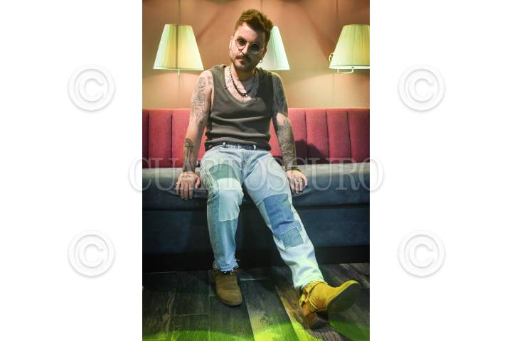 CIUDAD DE MÉXICO, 04FEBRERO2025.- Ramón Fernández, cantante e hijo de Vicente Fernández Jr., ofreció conferencia de prensa para presentar su más reciente producción "Para ti", el cual incluye seis canciones, en colaboración con Gohn, UNDR MX y Diego Carrillo. En la imagen, Ramón muestra un tatuaje del rostro de su abuelo Vicente Fernández. FOTO: MARIO JASSO/CUARTOSCURO.COM
